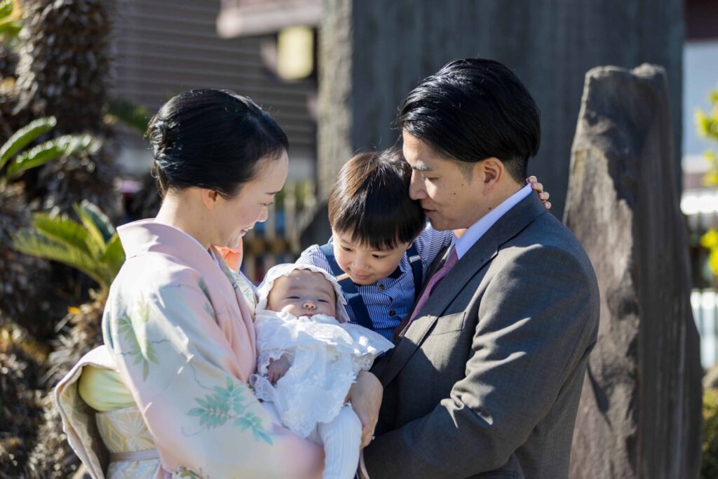 着物・着付け・ヘアメイク・撮影が全て含まれた安心プラン。ご家族の記念撮影にも対応。
